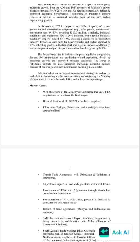 Finance Minister Aurangzeb stated that Pakistan is considering buying more cotton and soybeans from the US and is in discussions to remove non-tariff barriers that hinder access to American products.