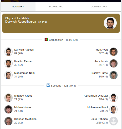 Afghanistan vs Scotland: AFG win first ICC T20 World Cup warm-up clash by 61 runs
