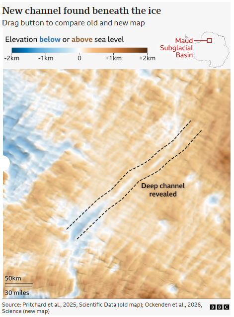 Among the notable findings is a long, deep channel carved into the bedrock of the Maud Subglacial Basin. The feature stretches for nearly 400 kilometres and is several kilometres wide, highlighting how dynamic the landscape beneath the ice can be.