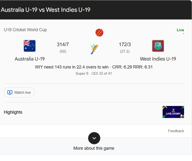 Earlier, the West Indies XI elected to field first in the 33rd ODI of the ICC Super Six, aiming to exploit the early conditions and restrict Australia U19 to a manageable total.