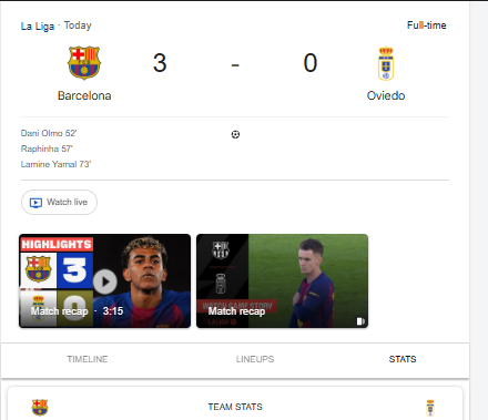 BARCELONA: The Barca vs Oviedo clash saw FC Barcelona securing a commanding 3–0 victory over Real Oviedo in their La Liga fixture, producing a dominant second-half performance to seal all three points.