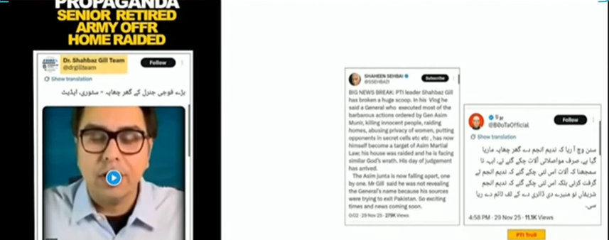 Lt Gen Sharif added that even press conferences by the Khyber Pakhtunkhwa Chief Minister Sohail Afridi are reportedly showcased on Indian channels to serve this agenda. The DG ISPR alleged that significant funds are being spent to propagate anti-military narratives, while Afghan media also facilitates trolling. He criticised an individual, calling him a “mentally disturbed” person, whose tweets against the armed forces were quickly viralised by foreign trolls. He warned against distributing “certificates of treason” and claimed that these agitators are ideologically influenced by figures like Sheikh Mujibur Rahman.