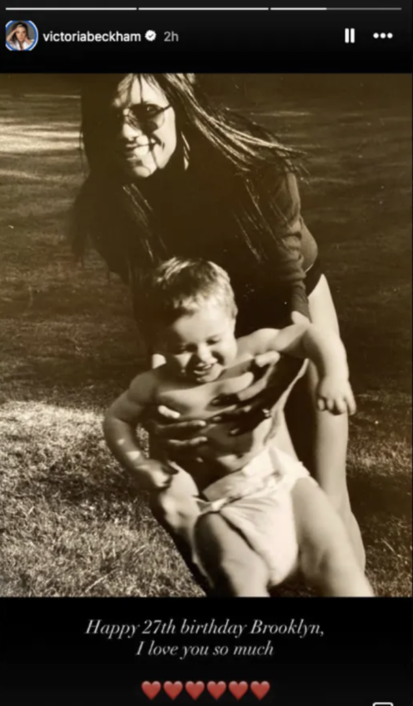 Victoria also posted the same childhood photo alongside another image showing her playing with Brooklyn when he was a toddler, adding a message celebrating his birthday.