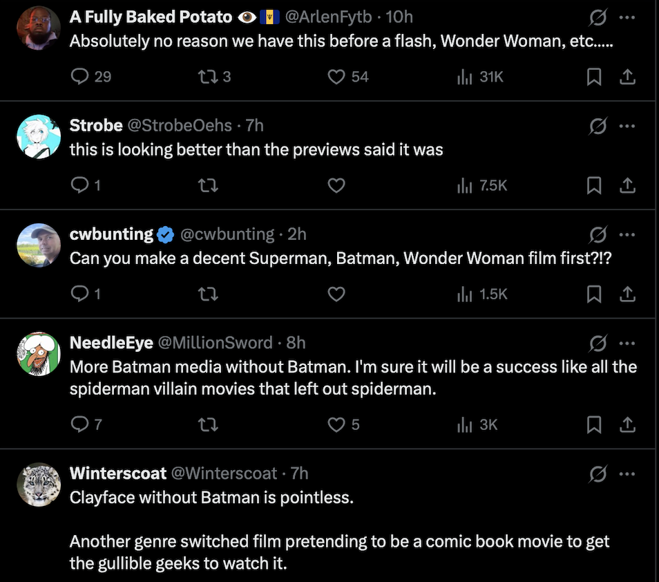 There has also been scepticism about DC’s broader strategy, with some viewers saying they would wait for reviews before forming an opinion, reflecting a wider hesitation around the studio’s recent output.