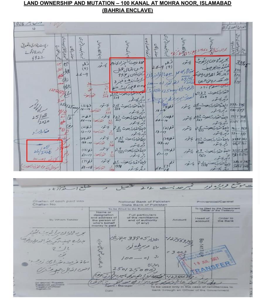 On July 19, 2021, Farah Gogi received 240 kanals of land from the same property tycoon as a bribe. The PTI government dropped a Rs460 billion damages case against the property tycoon in exchange for the out-of-court settlement on December 3, 2019.