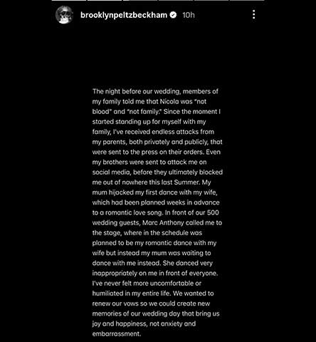 But what is interesting here is Brooklyn’s accusation of how his mother Victoria had agreed to assist Nicola with the wedding dress but decided to abandon at the ‘eleventh hour’ which led many people on Instagram to question how Vogue wrote about Peltz’s year-long meetings with the creative director at Valentino’s.