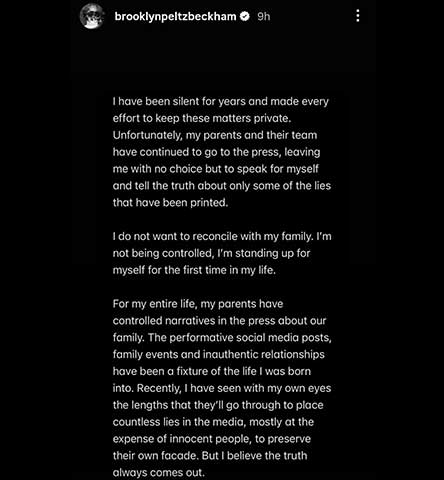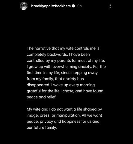 ‘I have been controlled by my parents, not my wife’: Brooklyn Beckham breaks silence on family rift