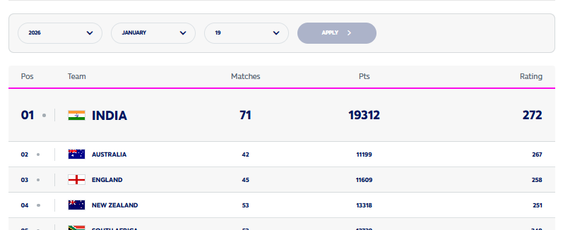 With this convincing IND vs NZ win, India took a 1–0 lead in the five-match T20 series. The result also underlined India’s dominance in the format, with the Men in Blue currently sitting atop the ICC Men’s T20I rankings, ahead of fourth-placed New Zealand.