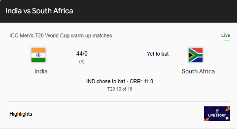 As the game progresses, India vs South Africa promises competitive cricket, even in a preparatory setting, with both teams keen to hit peak form before the business end of the T20 World Cup.