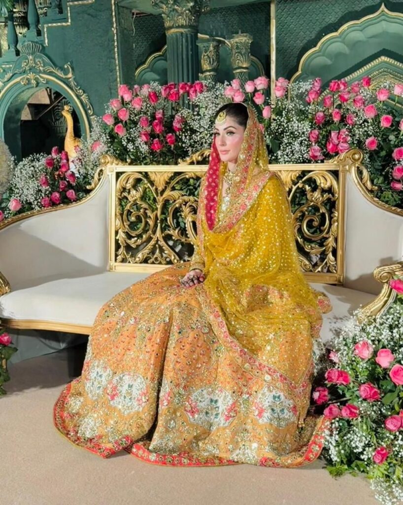 Alongside the couple, Chief Minister Maryam Nawaz also stood out, appearing in a Nomi Ansari ensemble dominated by shades of yellow, a clear nod to the Mehndi setting and its celebratory spirit.