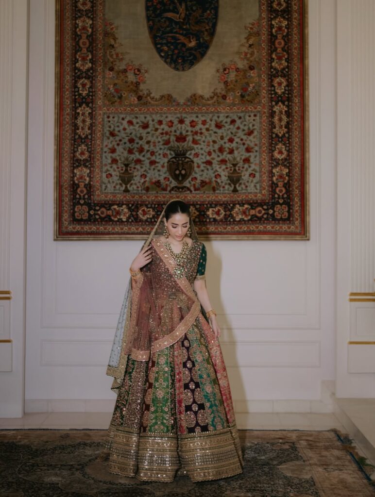 The son of Chief Minister Punjab Maryam Nawaz, Junaid opted for a classic HSY sherwani paired with a shawl, while Shanzay appeared as a Sabyasachi bride in a warm palette of tea pink and green, accented with subtle maroon and purple tones that complemented the ensemble. Staying true to tradition, she chose kundan jewellery, which aligned seamlessly with the understated aesthetic of the event.