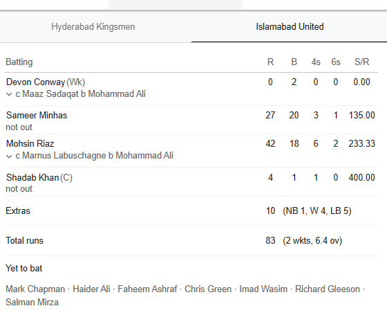 Islamabad United vs Hyderabad Kingsmen: Mohsin leads side to crush HK in 7th over