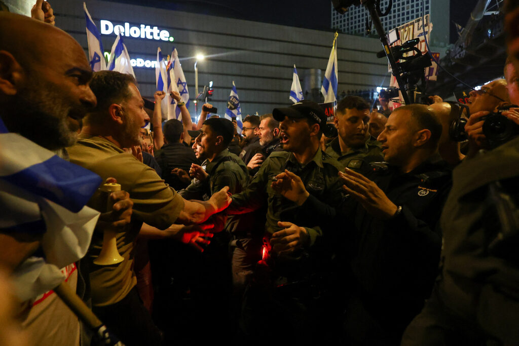 TEL AVIV: Scuffles between security officials and protesters erupted in Tel Aviv on Saturday night as crowds from two separate demonstrations joined each other, demanding the government to step down and for hostages held in Gaza to be brought back immediately.