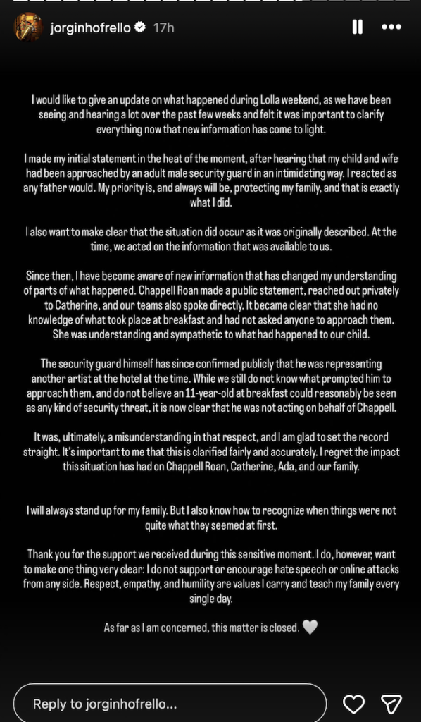 Jorginho has addressed the viral controversy involving Chappell Roan, issuing a fresh statement after weeks of speculation online.