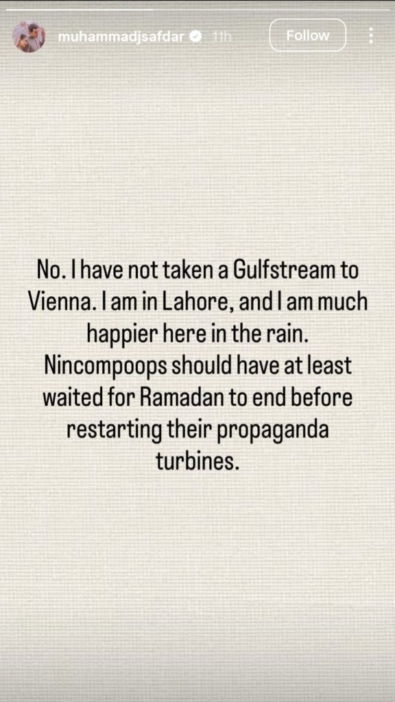 Junaid then addressed the speculation himself through an Instagram story, publicly denying that he had gone to Vienna and reinforcing the family’s position as the rumour continued to circulate online.