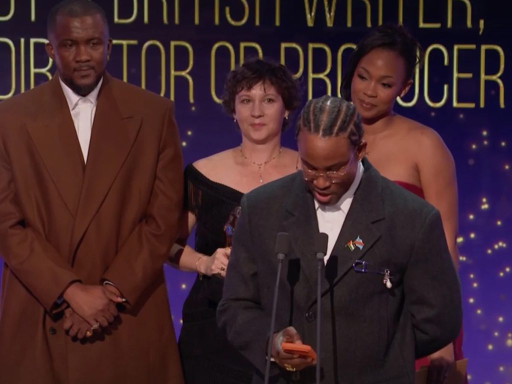 While the BBC broadcast included Davidson’s outbursts, including the racial slur, it did not air another notable moment from the live event: speech remarks made by filmmaker Akinola Davies Jr, who won a BAFTA for outstanding debut and ended his acceptance speech with a call for “Free Palestine,” which generated cheers in the room but was omitted from the BBC’s edited broadcast.