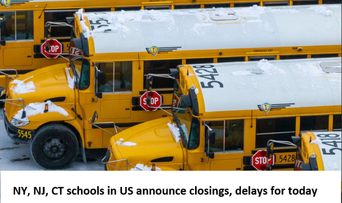 NY, NJ, CT schools in US announce closings, delays for today