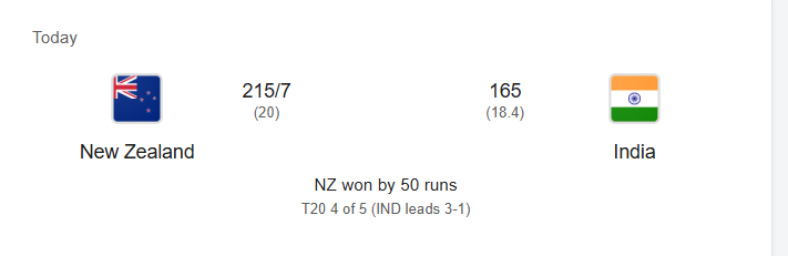 WEB DESK: New Zealand defeated India by 50 runs in the New Zealand vs India fourth T20I at the ACA-VDCA Cricket Stadium in Potinmallayapalem on Sunday, levelling the five-match series at 2-2. New Zealand posted 215-7 in their 20 overs against India, who had entered the match leading the series 3-1.