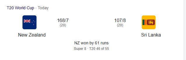 Earlier, the NZ vs SL Eights clash of the ongoing ICC Men’s T20 World Cup saw New Zealand post a competitive total of 168, setting up what appeared to be a manageable chase for the co-host Sri Lanka, who failed to execute on their familiarity with home conditions.