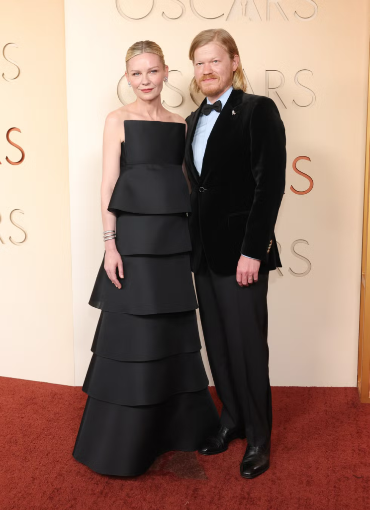 Kirsten Dunst attended the ceremony alongside her husband Jesse Plemons wearing a strapless black Celine gown.