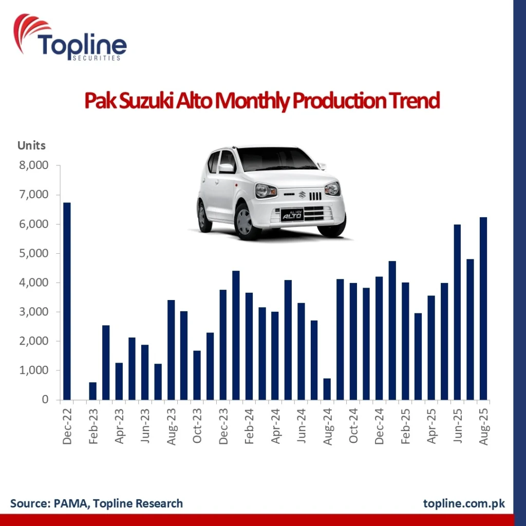 KARACHI: Pakistan Suzuki Motor Company (PSMC) has ramped up production of its Alto model, recording 6,238 units in August 2025 – the highest monthly output in 32 weeks.