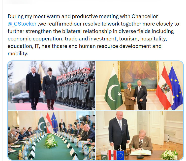 Pakistan and Austria have agreed to strengthen their bilateral relationship during Prime Minister Shehbaz Sharif’s high-level visit to Vienna, the first by a Pakistani premier to Austria in over three decades.