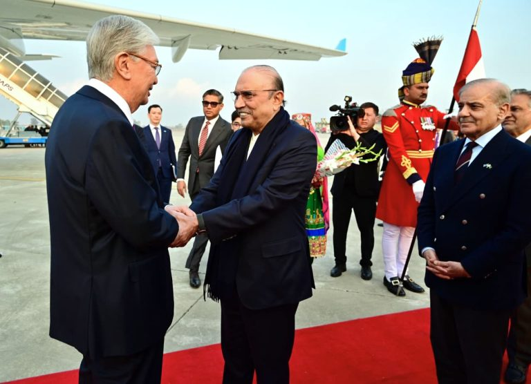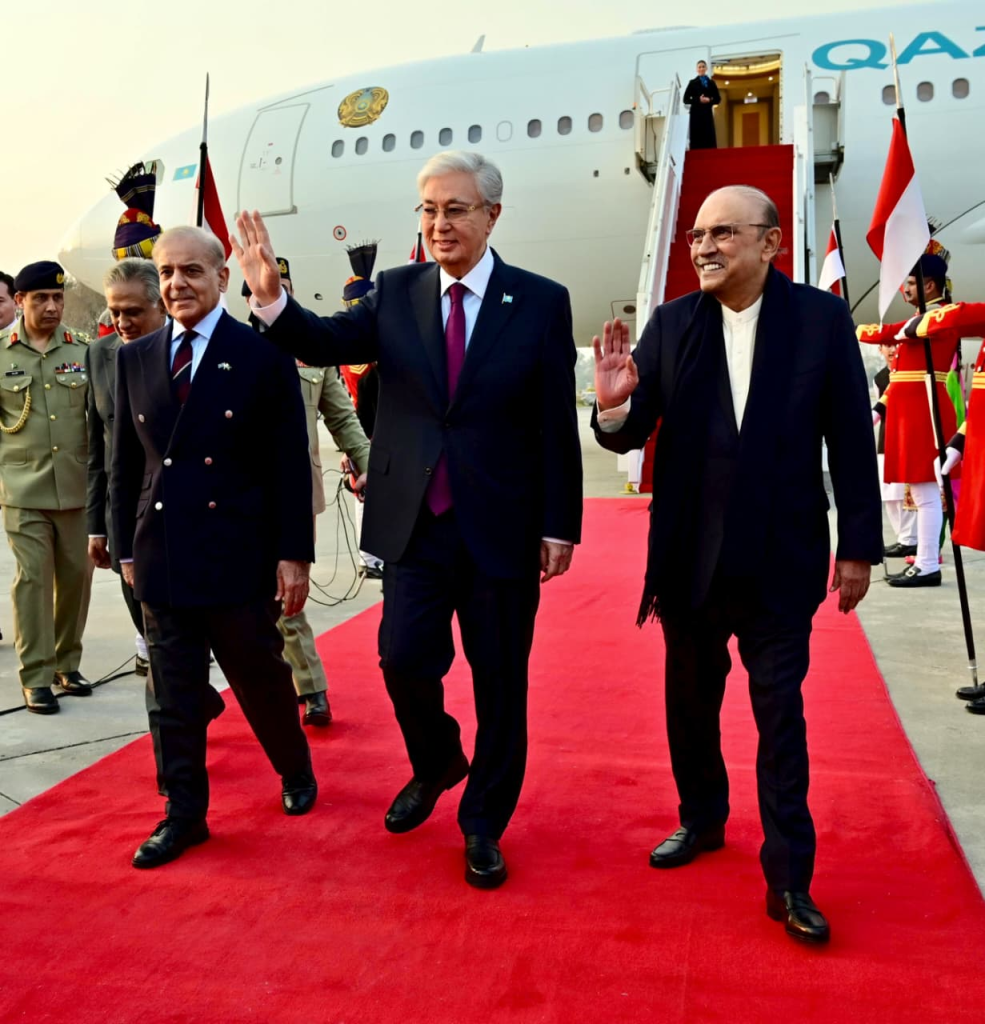 On Tuesday, President Zardari and Prime Minister Shehbaz Sharif warmly received President of Kazakhstan Kassym-Jomart Tokayev upon his arrival at Nur Khan Airbase for his first state visit to Pakistan from 3–4 February 2026. President Tokayev was accompanied by a high-level delegation including senior cabinet ministers and other officials. Children dressed in traditional attire and carrying the national flags of both countries greeted the Kazakh president.