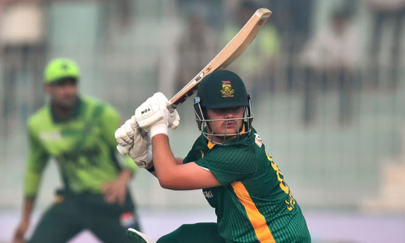 South Africa began brightly through young 19-year-old Lhuan-dre Pretorius, who continued his impressive rise with a 60-ball solid 57, studded with 7 fours and a hit before falling to Saim Ayub. Senior batter Quinton de Kock anchored the innings with a steady 63 off 71 deliveries, striking six boundaries as he kept the scoreboard moving.