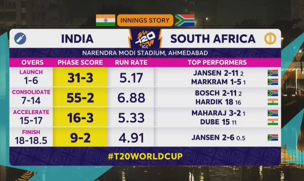 Just as South Africa looked set to accelerate, India clawed back with timely breakthroughs through Arshdeep Singh and Jasprit Bumrah, keeping the scoring in check during the middle overs.
