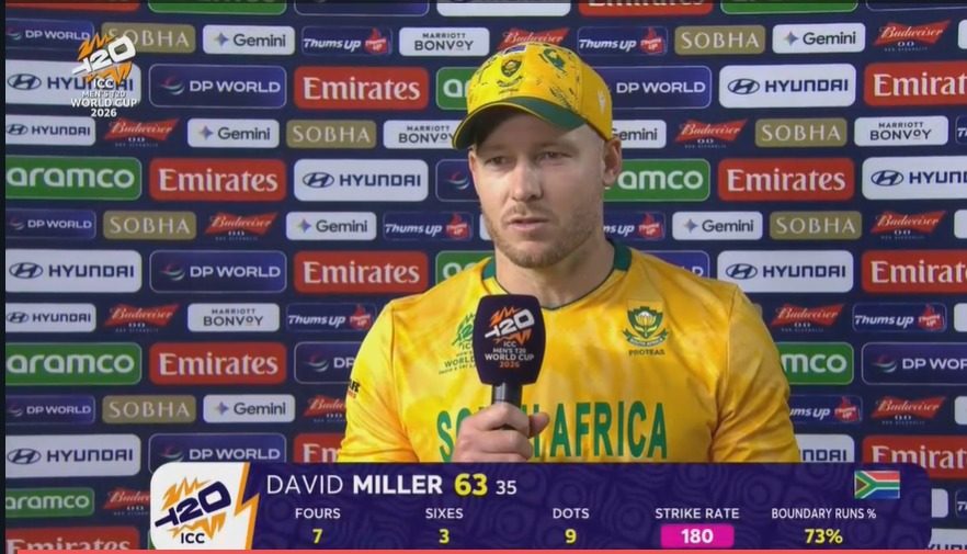 Earlier, David Miller’s 63 massive produced a commanding late assault to steer South Africa to a competitive 187-7 in their T20 World Cup clash against India, rescuing the innings after early setbacks and shifting momentum firmly back toward the Proteas.