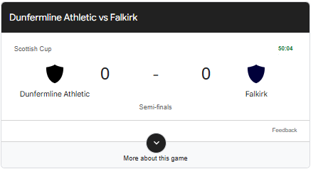 The match, being played in Glasgow, has seen disciplined performances from both teams, with neither able to break the deadlock despite competitive attacking spells. Dunfermline showed intent going forward but were unable to convert chances, while Falkirk maintained a compact shape, looking dangerous on the counter.
