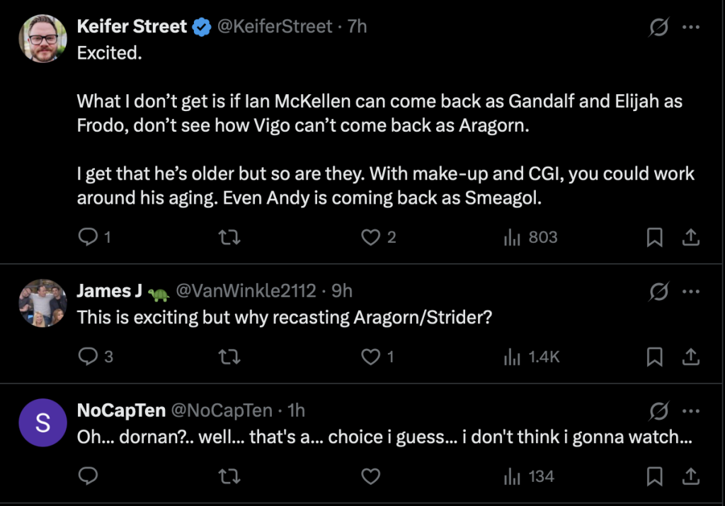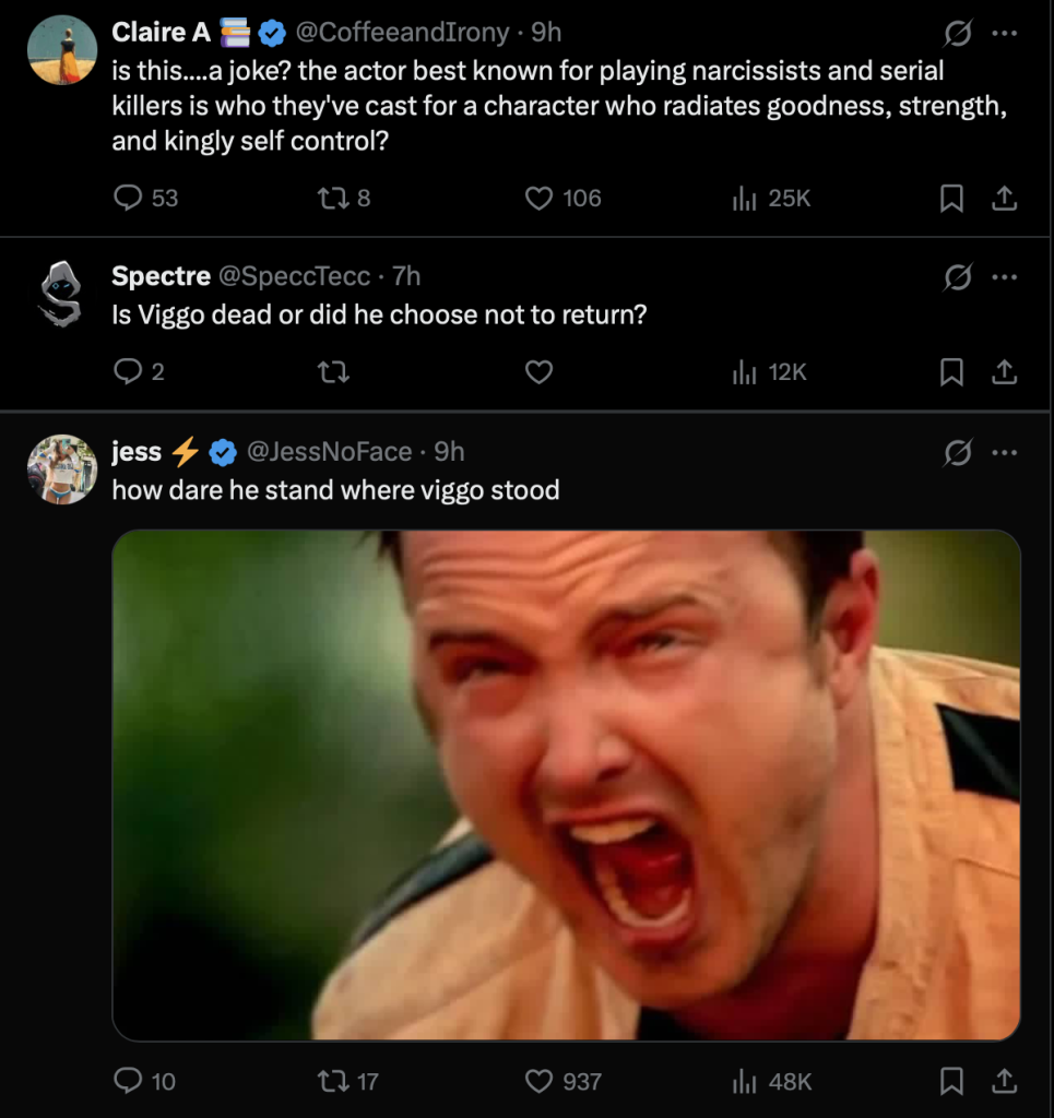 The announcement has left many fans unconvinced, with some expressing disappointment at the recasting and others questioning whether any actor can step into the role without being compared to Mortensen.