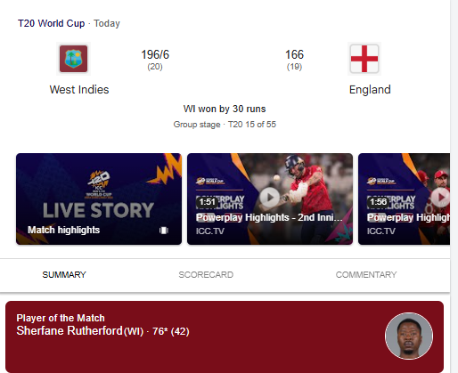 West Indies’ combination of explosive batting and clinical bowling underscores their T20 prowess, giving them a second consecutive win after beating Scotland in their opener. England, meanwhile, must regroup quickly after suffering their first loss of the tournament.