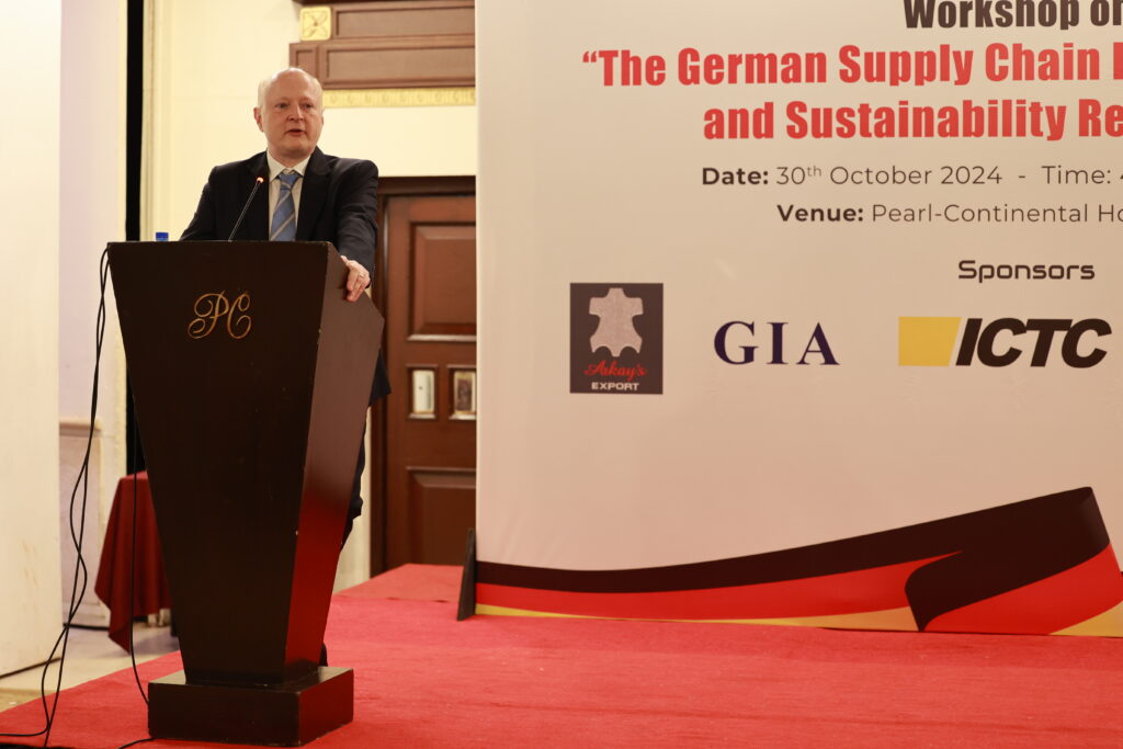 Held at the Pearl Continental Hotel, the workshop attracted GPCCI members, prominent textile manufacturers, industry experts, and representatives from both large businesses and SMEs. Participants received comprehensive insights into aligning their operations with Germany’s new regulatory framework, a critical step toward ensuring sustainable and responsible supply chain practices.