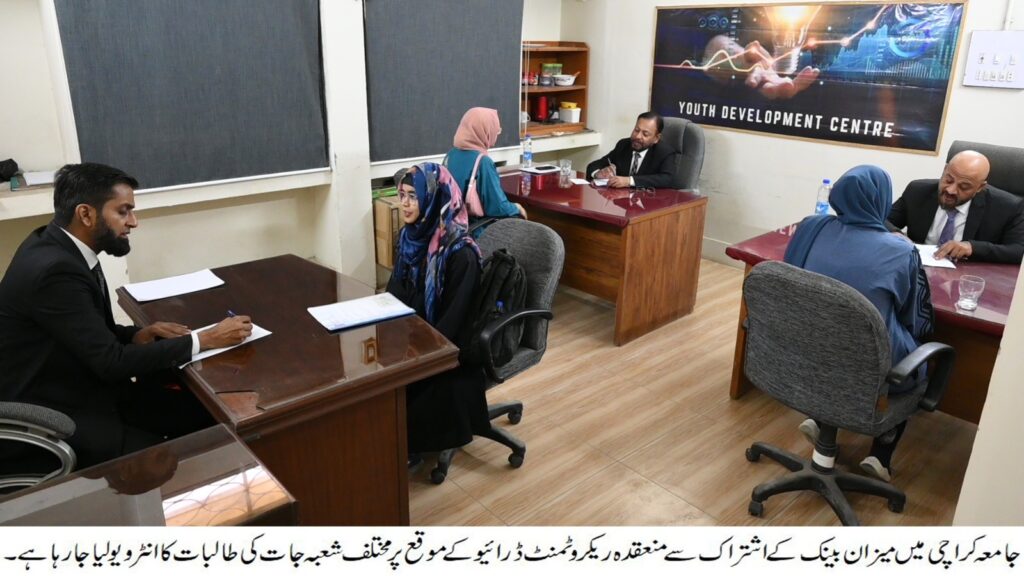 The Office of Research, Innovation and Commercialization of the University of Karachi and Prime Minister’s Youth Development Center in collaboration with Meezan Bank Private Limited organized a day-long recruitment drive at the Karachi University Incubation Center on Tuesday.