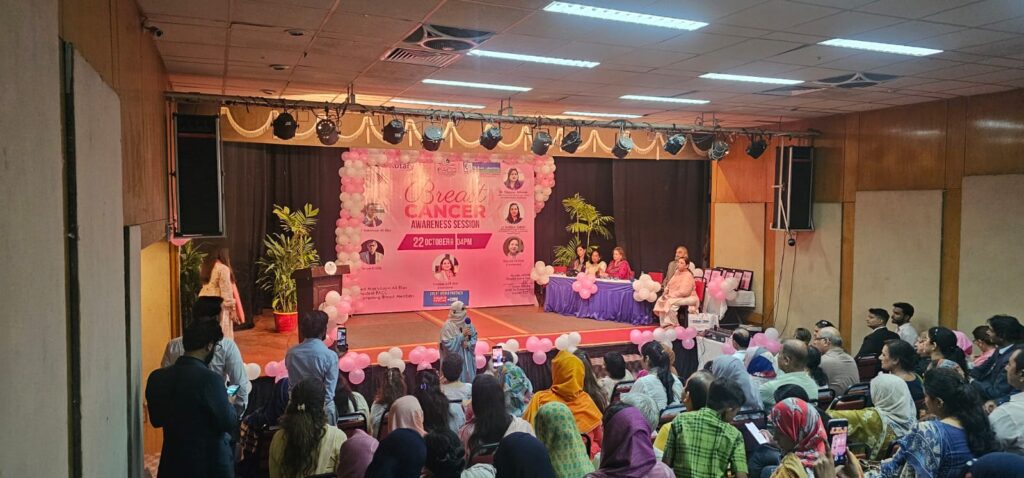 The event featured a distinguished panel of medical professionals and advocates, including Dr. Nayyer Jabeen, Dr. Rabbia Zubair, Rizwan Adhia, Syed Makhdoom Ali Riaz, and Aslam Khaliq. Ms. Sabeeha Essa, Ms. Khursheed Hayder, The Chief Guest, Samina Arif Alvi, Former First Lady of Pakistan, graced the occasion, lending her support to this vital cause and highlighting the societal impact of breast cancer awareness.