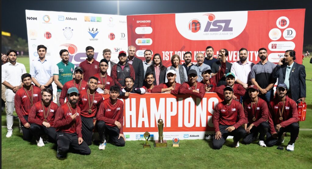 The inaugural IoBM Super League (ISL 2024), an inter-university cricket tournament hosted by the Institute of Business Management, concluded in thrilling fashion on November 28. In a nail-biting final, the Institute of Business Administration (IBA) defeated IoBM, with a narrow 6-run victory to claim the first ISL Champions Trophy in a dramatic finish. Held from November 18 to 28, 2024, ISL 2024 brought together eight university cricket teams from across Karachi in a thrilling series of 15 fiercely contested matches. The teams included KASBIT, Salim Habib University, Denning University, FAST, MITE, and Shaheed Zulfiqar Ali Bhutto University of Law (SZABUL). Organized by IoBM’s Students and Sports Affairs Department, the tournament featured live-streamed matches on IoBM’s YouTube channel, complete with professional commentary, on-screen graphics, on-ground analysis, and interviews. The pool matches and semi-finals were held at the Rashid Latif Cricket Academy, while the much-anticipated final took place at the Naya Nazimabad Cricket Ground, showcasing some of the finest young talent in the city.