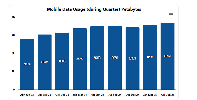 The report further revealed that during Fiscal Year 2024-25 (FY2024-25), total mobile data usage reached 13,002 petabytes, a 20 per cent rise from the previous year. Similarly, fixed broadband usage grew by 29 per cent, totaling 12,120 petabytes.