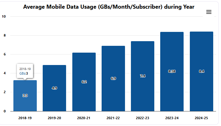 According to the report, this marks a 13.5 per cent increase in average monthly data usage compared to the previous year. Over a span of four years, the growth is even more striking–a 71 per cent increase from 4.9 GB in 2020 to 8.4 GB in 2024.